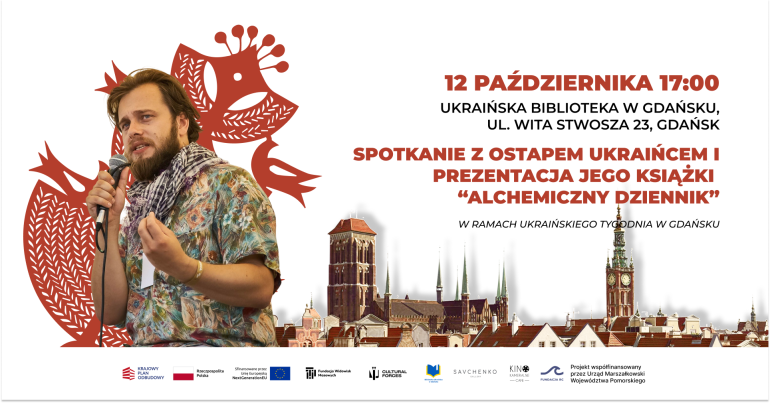 Zapraszamy na spotkanie z Ostapem Ukraińcem - pisarzem, tłumaczem i literaturoznawcą ze Lwowa, autorem książki "Alchemiczny dziennik".