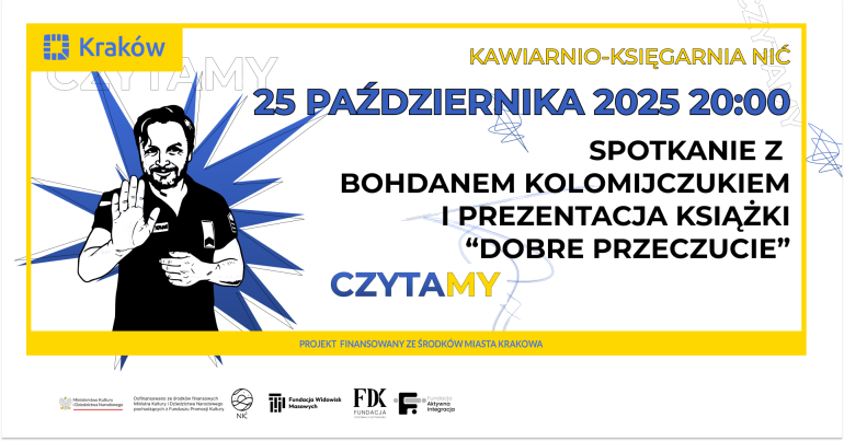 Wydarzenie realizowane przez Fundację Widowisk Masowych w ramach projektu "Spotkania z literaturą ukraińską - CzytaMY" przy wsparciu finansowym Urzędu Miasta Krakowa.Dofinansowano ze środków Ministra Kultury i Dziedzictwa Narodowego pochodzących z Funduszu Promocji Kultury - państwowego funduszu celowego.
