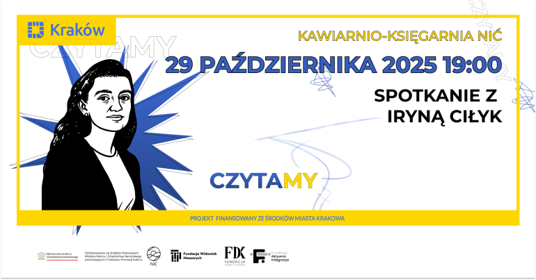 Wydarzenie realizowane przez Fundację Widowisk Masowych w ramach projektu "Spotkania z literaturą ukraińską - CzytaMY" przy wsparciu finansowym Urzędu Miasta Krakowa.Dofinansowano ze środków Ministra Kultury i Dziedzictwa Narodowego pochodzących z Funduszu Promocji Kultury - państwowego funduszu celowego.