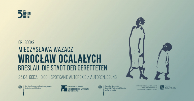 OP ENHEIM und das Schlesische Museum zu Görlitz laden zu einem Autorentreffen mit Mieczysława Wazacz und einem Gespräch über ihr Buch "Breslau. Die Stadt der Geretteten" ein. Das Autorentreffen wird von Tamara Włodarczyk, Autorin von Publikationen über die jüdische Gemeinschaft in Niederschlesien und von Stadtführern über das jüdische Wrocław moderiert.