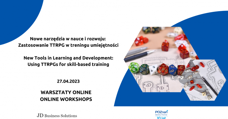 Poznań Biznes Partner and JD Solutions cordially invite you to a free workshop entitled New tools in learning and development - Using TTRPG for skill-based training.