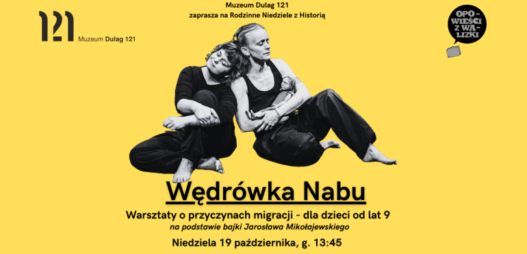 Tym razem dzieci i rodzice będą mogli zagłębić się w temat trudny, jednak towarzyszący nam na co dzień. Na podstawie spektaklu "Wędrówka Nabu" - opartego na bajce Jarosława Mikołajewskiego - jednego z najważniejszych polskich pisarzy dziecięcych - będą mogli porozmawiać o losie migrujących dzieci. Pretekstem do tego będzie historia małej Nabu - dziewczynki pozbawionej domu, miotanej przez siły, których nie może zrozumieć.