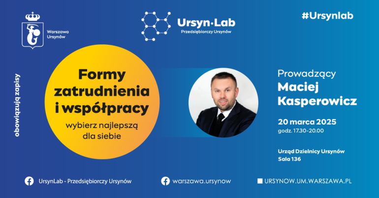Urząd Dzielnicy Ursynów w ramach UrsynLab zaprasza na kontynuację szkolenia z Prawa Pracy: "Formy zatrudnienia i współpracy - wybierz najlepszą dla siebie".