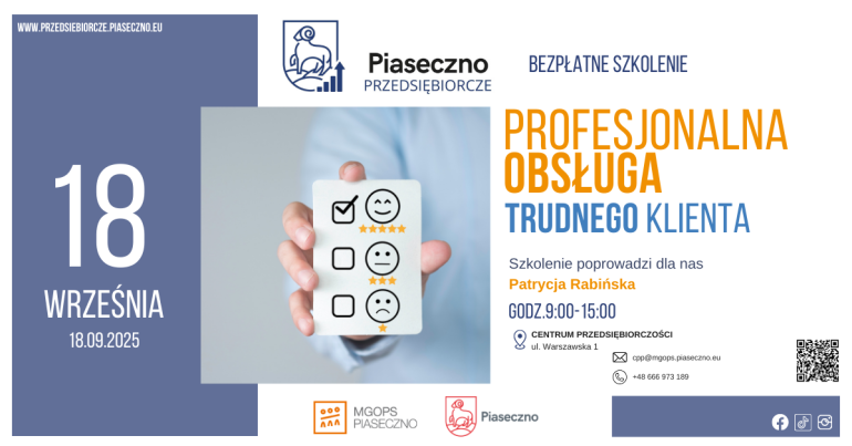 Bezpłatne szkolenie w Centrum Przedsiębiorczości w Piasecznie "Profesjonalna obsługa trudnego klienta"