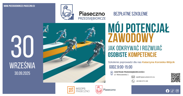 Centrum Przedsiębiorczości w Piasecznie zaprasza na bezpłatne szkolenie "Mój potencjał zawodowy- jak odkrywać i rozwijać osobiste kompetencje".