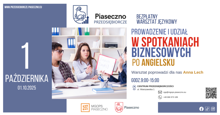 Bezpłatny warsztat językowy w Centrum Przedsiębiorczości w Piasecznie "Prowadzenie i udział w spotkaniach biznesowych po angielsku"