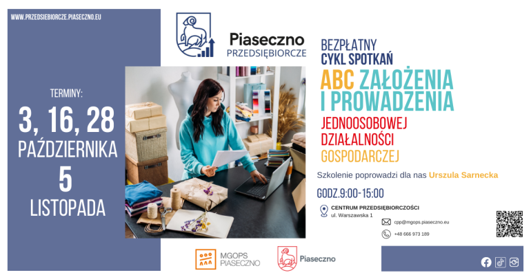 Bezpłatny cykl spotkań w Centrum Przedsiębiorczości w Piasecznie "ABC założenia i prowadzenia jednoosobowej działalności gospodarczej"