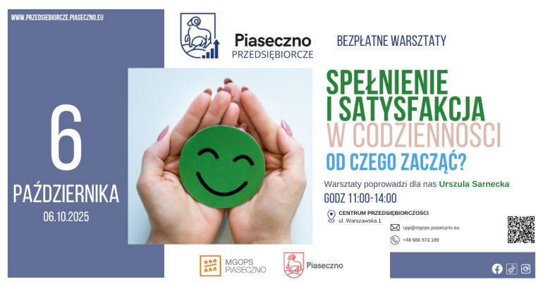 Bezpłatny warsztat w Centrum Przedsiębiorczości w Piasecznie "Spełnienie i satysfakcja w codzienności- od czego zacząć?"