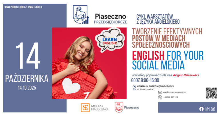 Bezpłatny warsztat językowy w Centrum Przedsiębiorczości w Piasecznie "English for your social media- tworzenie efektywnych postów w mediach społecznościowych"