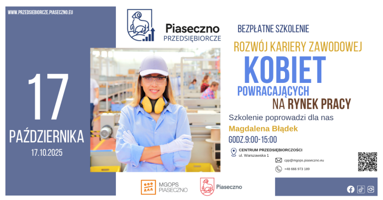 Bezpłatne szkolenie w Centrum Przedsiębiorczości w Piasecznie "Rozwój kariery zawodowej kobiet powracających na rynek pracy"