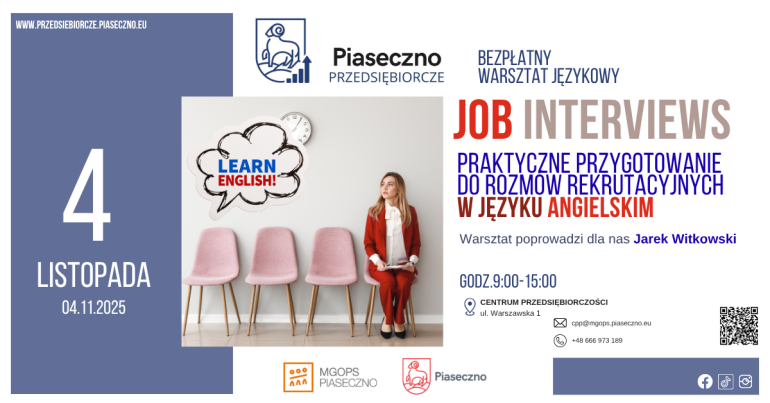 Bezpłatny warsztat językowy w Centrum Przedsiębiorczości w Piasecznie "Job interviews - praktyczne przygotowanie do rozmów rekrutacyjnych w języku angielskim"