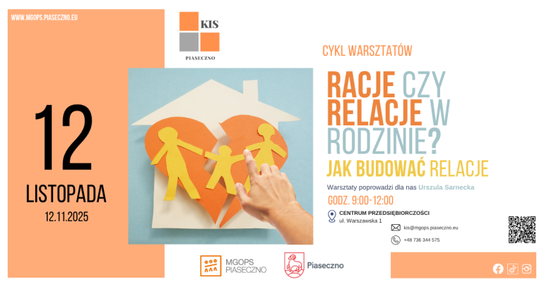 Bezpłatny warsztat w Centrum Przedsiębiorczości w Piasecznie "Racje czy relacje w rodzinie? - jak budować relacje"