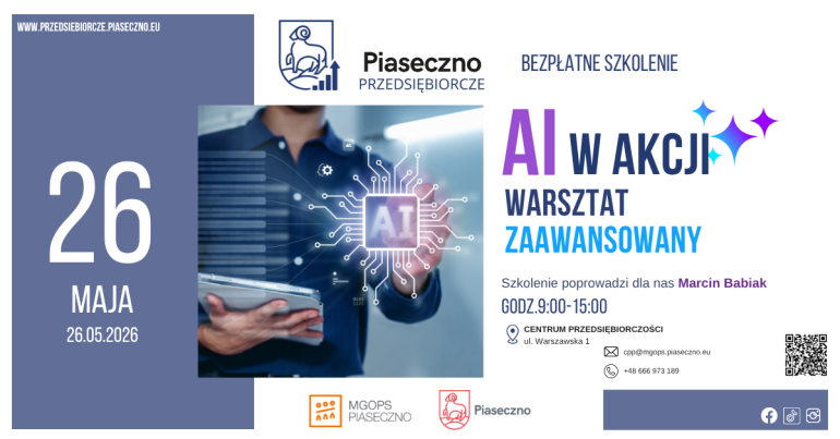 Bezpłatne szkolenie w Centrum Przedsiębiorczości w Piasecznie "AI w akcji - warsztat zaawansowany"