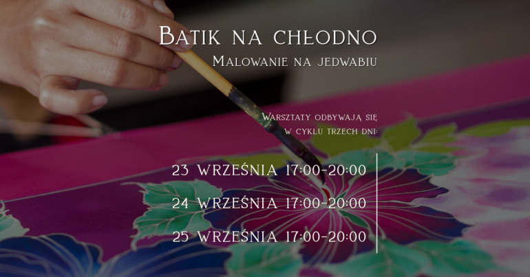 Zapraszamy na trzydniowy cykl warsztat贸w, podczas kt贸rych stworzymy 艣wietliste, zwiewne obrazy malowane na jedwabiu.