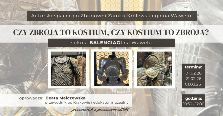 Zapraszam do tej dyskusji "w czasie i przestrzeni" w nowej odsłonie Zbrojowni Zamku Królewskiego na Wawelu. W ramach spaceru spróbujemy się wspólnie zastanowić nad tym,