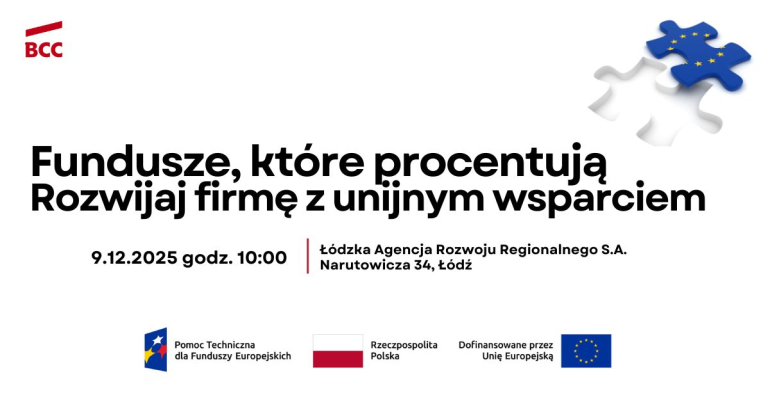 Zapraszamy przedsiębiorców z regionu łódzkiego na całodniowe, otwarte i bezpłatne spotkanie, które będzie okazją do zdobycia praktycznej wiedzy o możliwościach finansowania z funduszy UE. Poznaj historie przedsiębiorców, którzy dzięki środkom unijnym rozwinęli swoje firmy, i dowiedz się, jak sam możesz sięgnąć po pożyczki, dotacje i wsparcie eksportowe. Inspiracje, praktyczne wskazówki i eksperci w jednym miejscu - nie przegap!