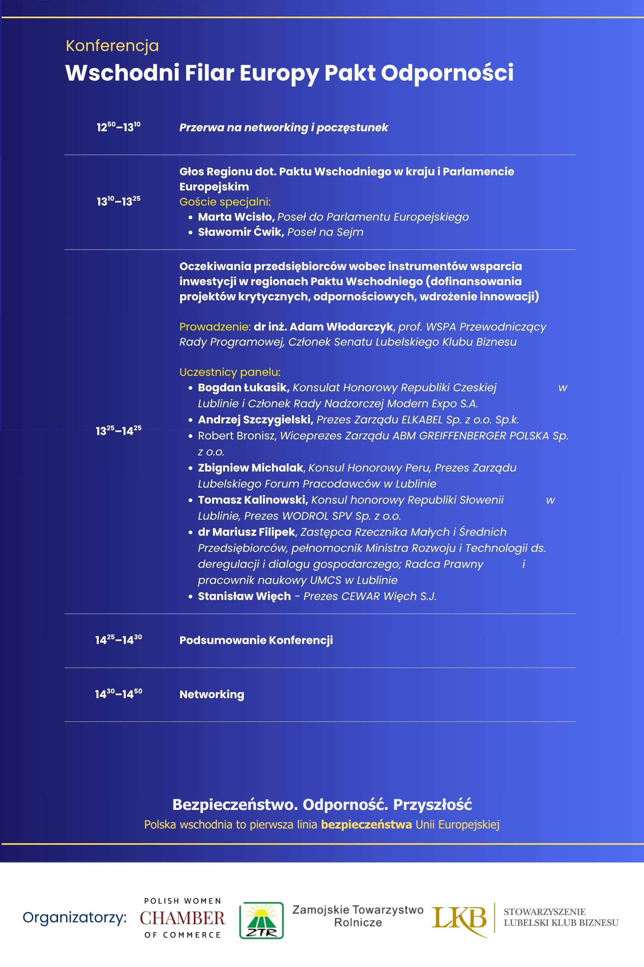 "Wschodni Filar Europy - Pakt Odporności" to najważniejsze w kraju spotkanie dotyczące środków na bezpieczeństwo i odporność gospodarczą wschodnich regionów przygranicznych.