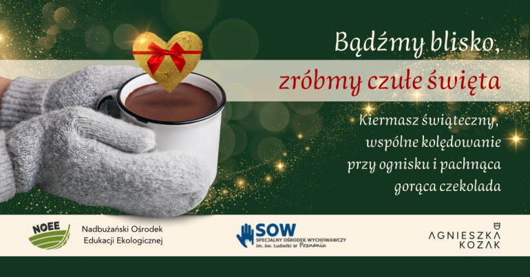 Zapraszamy do spotkania z bliskością i w bliskości. Napijemy się razem gorącej czekolady lub grzanego wina. Posłuchamy co Agnieszka Kozak mówi o bliskości i jak o nią zadbać w święta. Ogrzejemy dłonie przy ognisku i RAZEM zbudujemy czuły dom dla dzieci z SOW. Zaśpiewamy też kolędy - głośno, by świat usłyszał, że warto się dzielić miłością i bliskością.