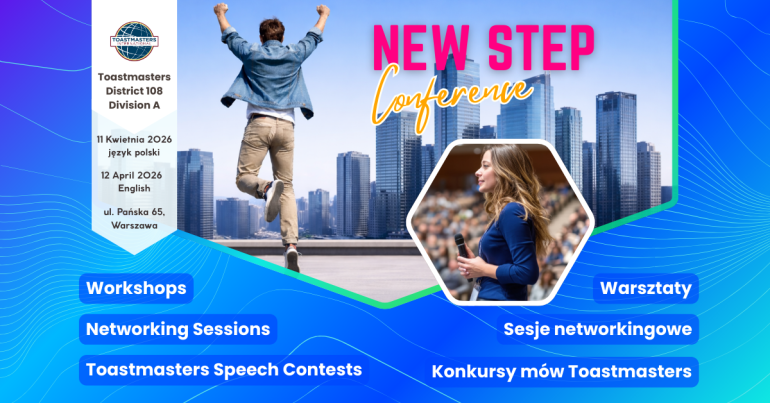 Konferencja Toastmasters Division A, "NEW STEP Conference" 2026 odbędzie się w formule dwudniowej i dwujęzycznej. The 2026 Toastmasters Division A conference "NEW STEP Conference" will be held in a two-day and bilingual format. Information in English is below.
