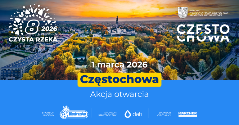 Zapraszamy wszystkich chętnych do wzięcia udziału w Akcji Otwarcia 8. edycji Operacji Czysta Rzeka, która odbędzie się 1 marca 2026 r. w Częstochowie. Nasze miasteczko zlokalizowane będzie na skwerze (plac zabaw) przy ulicy Piastowskiej 51.