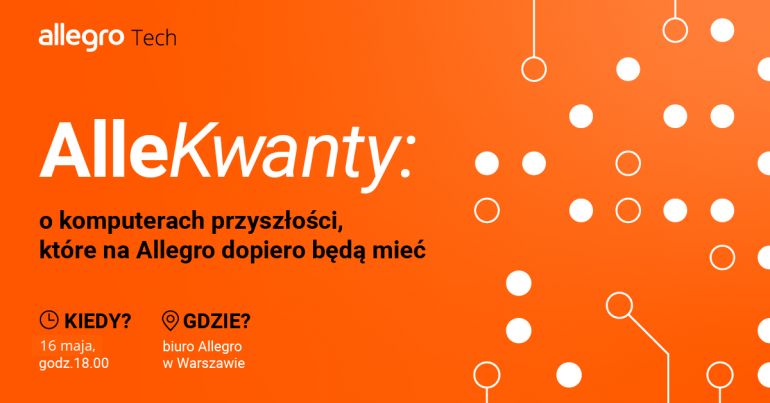 Już 16 maja o godz. 18.00 w biurze Allegro w Warszawie odbędzie się meetup: AlleKwanty: o komputerach przyszłości, które na Allegro dopiero będą mieć z udziałem gości specjalnych. Spotkamy się z Piotrem Beńke (IBM), Piotrem Biskupskim (IBM), Tomaszem Ćwikiem (finQbit) oraz Rafałem Prachtem (finQbit), aby porozmawiać o komputerach kwantowych.