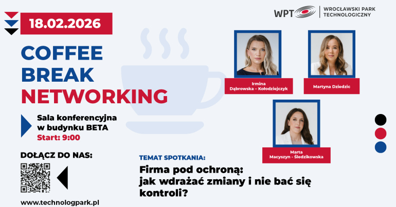 Zapraszamy na kolejne spotkanie z cyklu Coffee Break Networking, które odbędzie się 18 lutego 2026 r. o godz. 9:00! Naszymi prelegentkami będą- Irmina Dąbkowska-Kołodziejczyk - adwokat, specjalistka prawa pracy, Marta Macyszyn-Śledzikowska - radca prawny, specjalistka prawa pracy, Martyna Dziedzic - adwokat, specjalistka prawa pracy i BHP.