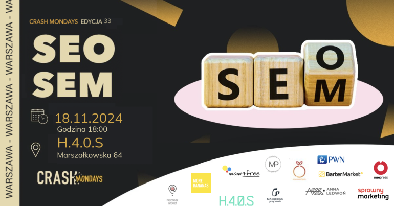 Zapraszamy na 33 edycję CRASH Mondays WARSZAWA! Tematem przewodnim będzie SEO/SEM 🙋 Uwaga, zderzymy teorię z praktyką! 😉