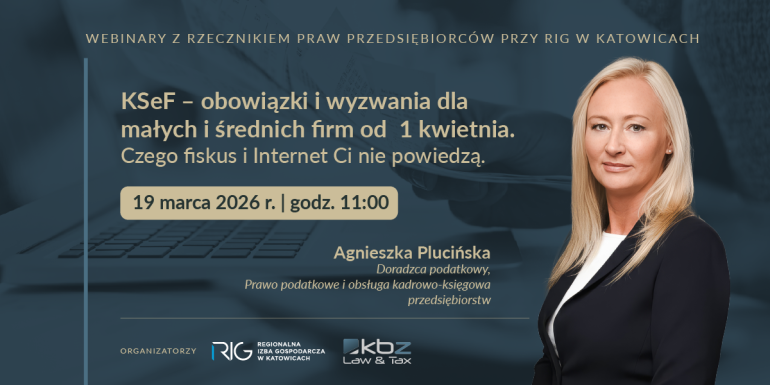 Regionalna Izba Gospodarcza w Katowicach wraz z kancelarią KBZ Law & Tax serdecznie zapraszają Firmy Członkowskie na webinar z cyklu spotkań online pod nazwą: Webinary z Rzecznikiem Praw Przedsiębiorców przy RIG w Katowicach - spotkania dla Firm Członkowskich