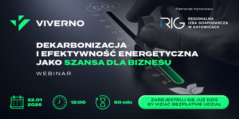 Regionalna Izba Gospodarcza w Katowicach razem z Viverno zapraszają do udziału w bezpłatnym webinarze: Dekarbonizacja i efektywność energetyczna jako szansa dla biznesu