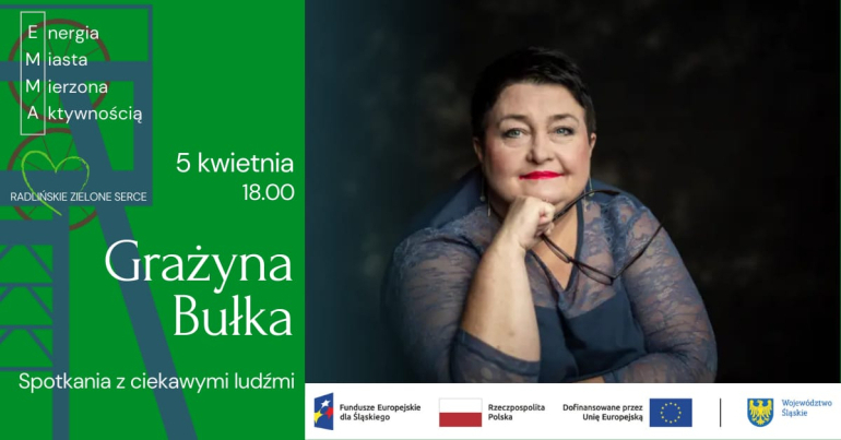 Każdy kto miał okazję zobaczyć na żywo, lub obejrzeć w Teatrze Telewizji, adaptację książki Alojzego Lyski "Mianujom mie Hanka", z pewnością został poruszony nie tylko warstwą tekstową, ale również wybitną interpretacją aktorską Grażyny Bułki. To właśnie ona będzie gościnią naszego kolejnego spotkania z ciekawymi ludźmi, w ramach zadania EMMA, które jest częścią projektu "Radlińskie zielone serce".
