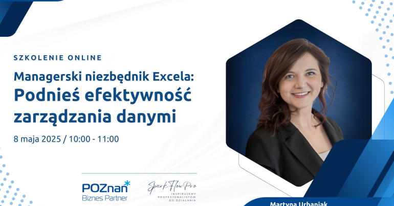 Poznań Biznes Partner oraz Martyna Urbaniak z Spark Flow Pro zapraszają na bezpłatne szkolenie online dla managerów, którzy chcą podejmować lepsze decyzje oparte na danych.
