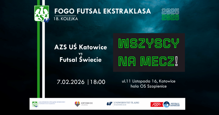 Mecz 18. kolejki FOGO Futsal Ekstraklasy pomiędzy AZS UŚ Katowice a Futsal Świecie