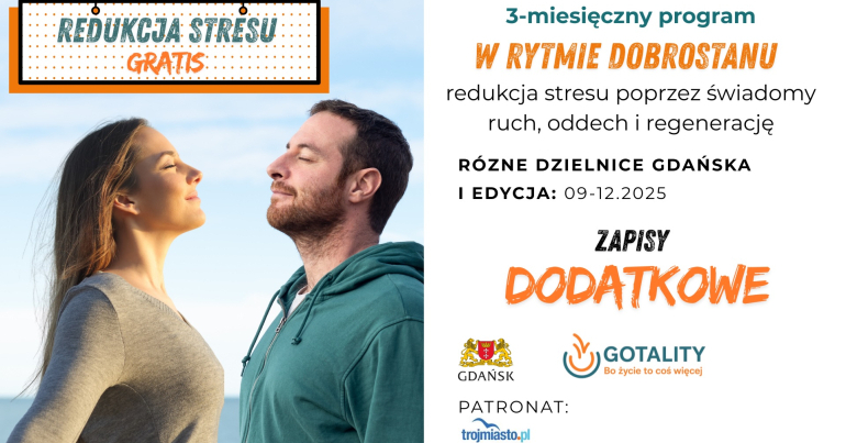 Od września do początku grudnia spotykamy się w różnych dzielnicach Gdańska, aby razem ćwiczyć, uczyć się technik redukcji stresu i budować zdrowe nawyki.
