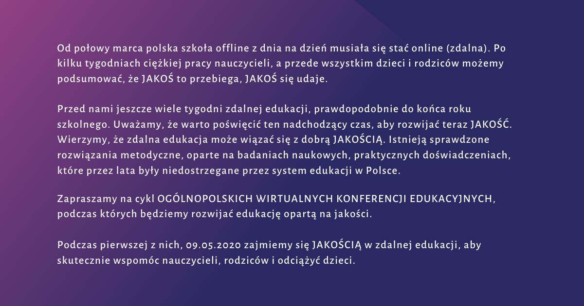 Wirtualna konferencja: JAKOŚ CZY JAKOŚĆ? Zdalna edukacja