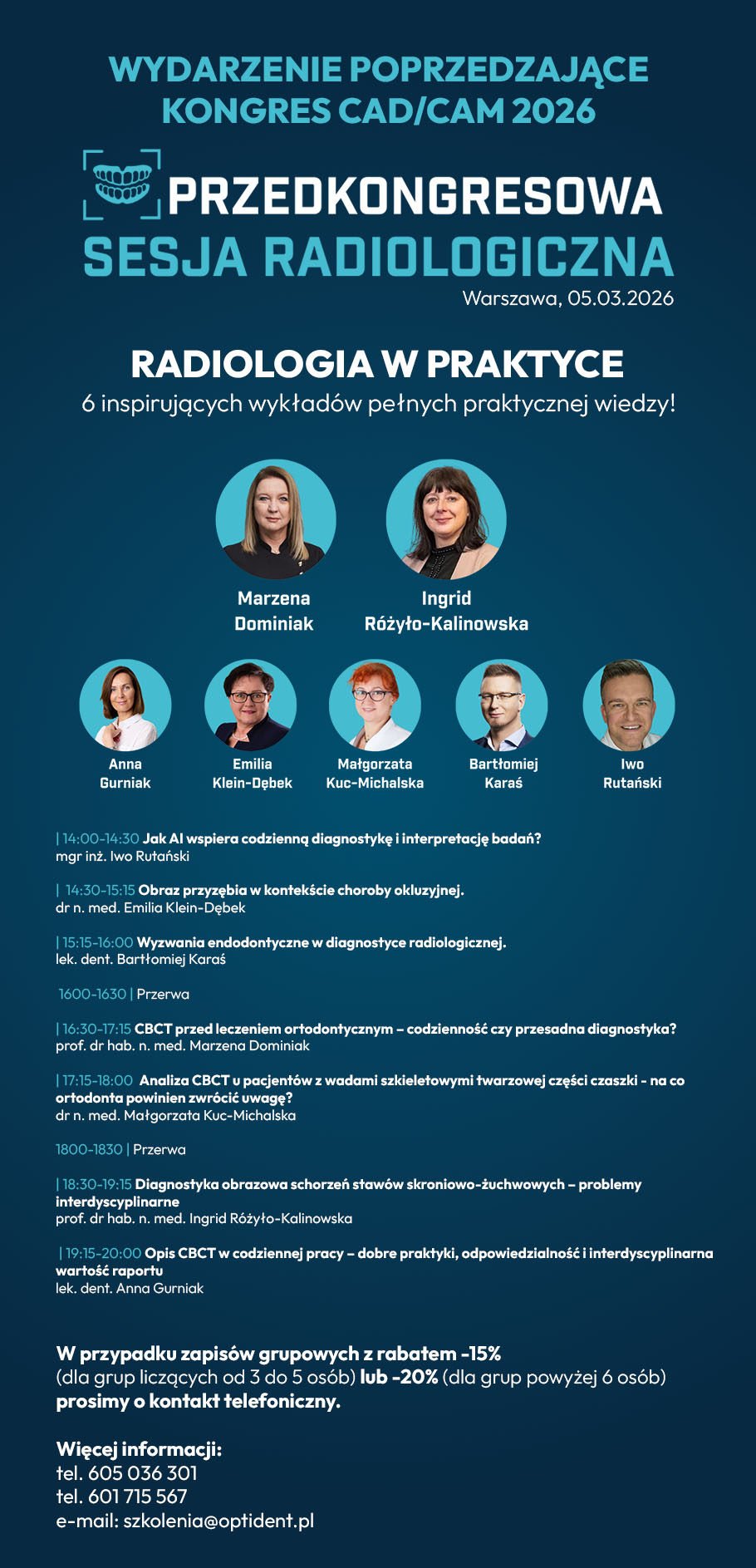 Informujemy, że firma Optident umożliwia rezygnację z udziału w Kongresie CAD/CAM z przyczyn losowych w terminie: