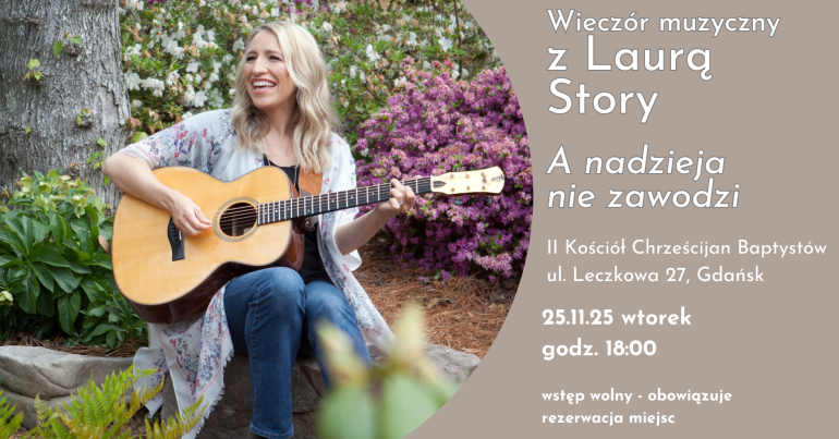 Zapraszamy na wyjątkowy wieczór muzyczny pt: "A nadzieja nie zawodzi" z Laurą Story - twórczynią muzyki chrześcijańskiej ze Stanów Zjednoczonych.