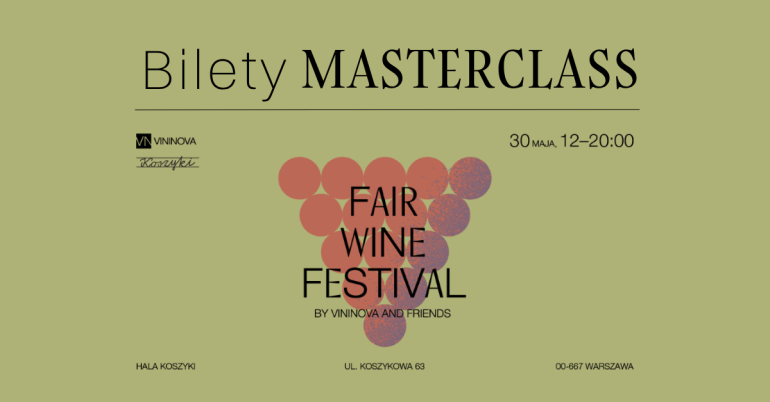 Uczestnicy nieposiadający biletu na festiwal nie zostaną wpuszczeni na część degustacyjną poza masterclassem. Bilety na festiwal do zakupu tutaj: Fair Wine Festival | Vininova & Friends , 30.05.2026 - Evenea.pl Wydarzenie wyłącznie dla osób pełnoletnich. Liczba miejsc na masterclassach jest ograniczona.
