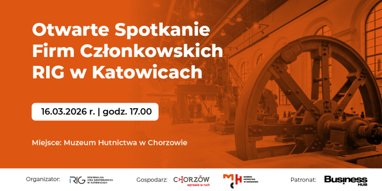 Regionalna Izba Gospodarcza w Katowicach serdecznie zaprasza na kolejne Otwarte Spotkanie Firm Członkowskich, które odbędzie się 16 marca 2026 r. w wyjątkowej przestrzeni Muzeum Hutnictwa w Chorzowie.