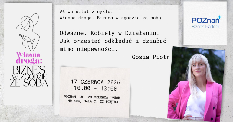 Poznań Biznes Partner oraz Gosia Piotr zapraszają na warsztat: Odważne. Kobiety w działaniu. Jak przestać odkładać i działać mimo niepewności