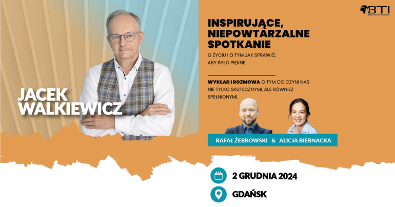 BILET VIP - BILET DLA 1 OSOBY W cenie biletu: - miejsce w pierwszym rzędzie - książka z personalizowaną dedykacją Jacka Walkiewicza - kameralna kolacja z Jackiem Walkiewiczem
