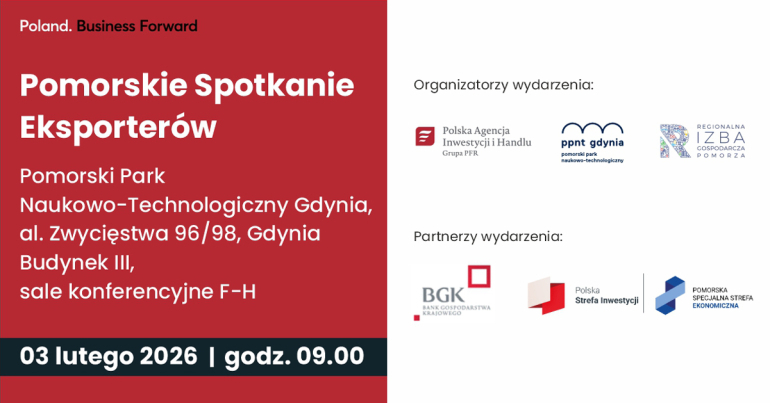 Polska Agencja Inwestycji i Handlu, Pomorski Park Naukowo-Technologiczny Gdynia oraz Regionalna Izba Gospodarcza Pomorza zapraszają polskich przedsiębiorców na bezpłatne spotkanie poświęcone eksportowi i internacjonalizacji. Wraz z naszymi partnerami, w przyjaznej atmosferze i przy dobrej kawie, wymienimy się doświadczeniami oraz porozmawiamy o dostępnych narzędziach wsparcia dla pomorskich przedsiębiorców.