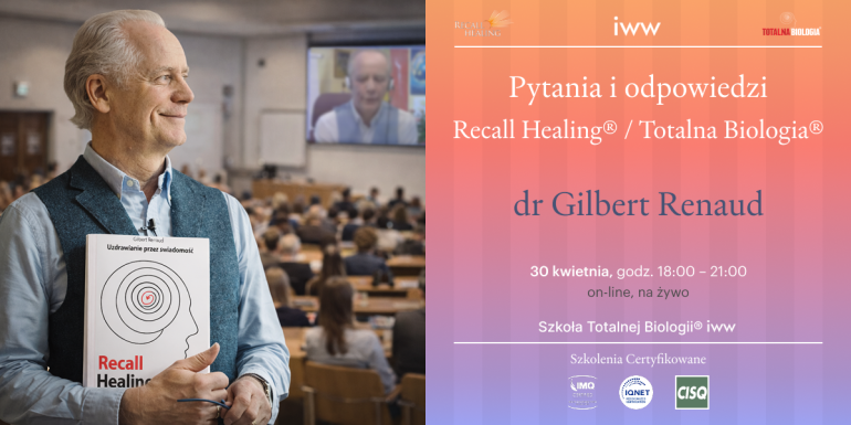 Zapraszamy na wyjątkowe wydarzenie w formule sesji pytań i odpowiedzi, poświęcone metodzie Recall Healing® / Totalna Biologia®, stworzonej i rozwijanej przez dr. Gilberta Renaud - twórcę metody, uznanego nauczyciela i badacza zależności pomiędzy psychiką, emocjami a ciałem.