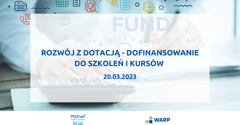Wielkopolska Agencja Rozwoju Przedsiębiorczości Sp. z o.o. oraz Poznań Biznes Partner zapraszają na bezpłatne spotkanie informacyjne online pt. "Rozwój z dotacją - dofinansowanie do kursów i szkoleń" dotyczące możliwości uzyskania dofinansowania do szkoleń i kursów dla dorosłych mieszkańców Wielkopolski.