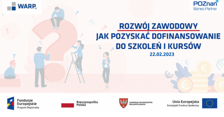 Poznań Biznes Partner oraz Wielkopolska Agencja Rozwoju Przedsiębiorczości zapraszają na bezpłatne spotkanie informacyjne online pt. "Rozwój zawodowy - jak pozyskać dofinansowanie do szkoleń i kursów itp."