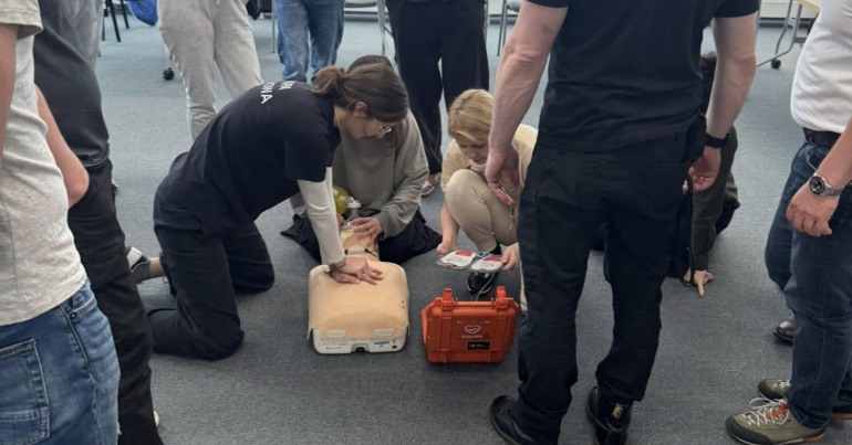 - Naukę resuscytacji krążeniowo-oddechowej (RKO) i obsługi defibrylatora (AED).