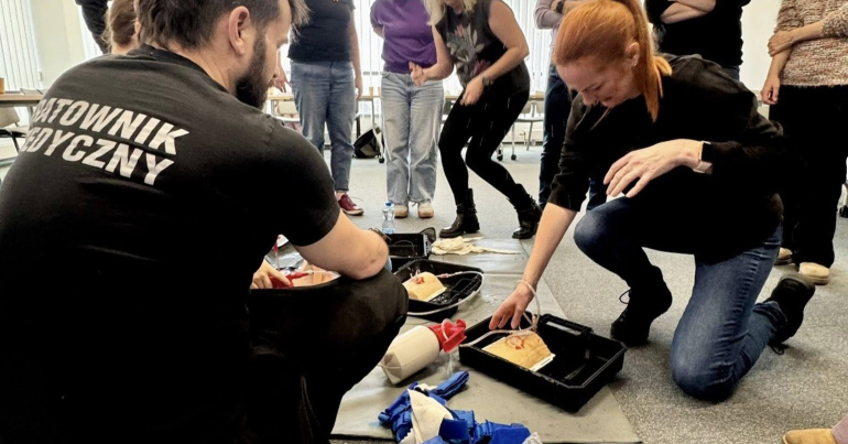 - Praktyczne warsztaty prowadzone przez doświadczonego ratownika medycznego Jarosława Krawieckiego i innych specjalistów.
