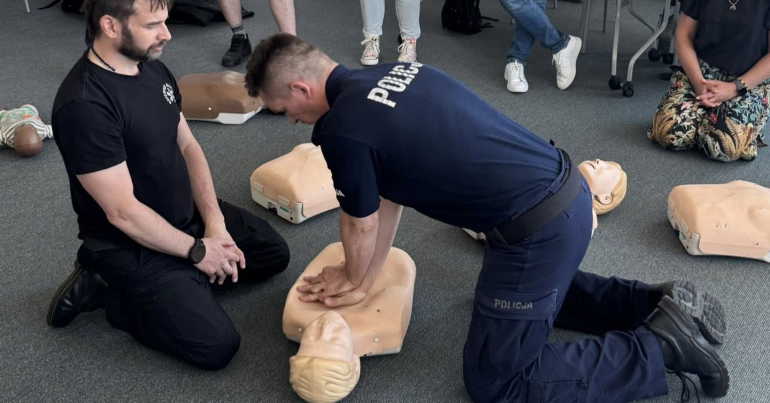 - Naukę resuscytacji krążeniowo-oddechowej (RKO) i obsługi defibrylatora (AED).