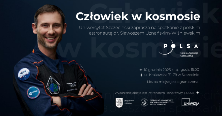 Rektor Uniwersytetu Szczecińskiego ma zaszczyt zaprosić na wydarzenie "CZŁOWIEK W KOSMOSIE - Spotkanie z polskim astronautą dr. Sławoszem Uznańskim-Wiśniewskim".