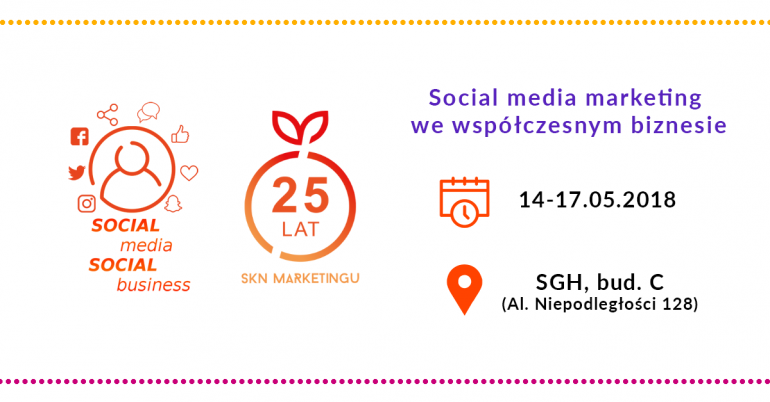 Specjalnie na obchody 25-lecia swojej działalności SKN Marketingu SGH przygotowało wyjątkowy projekt dla wszystkich entuzjastów marketingu w mediach społecznościowych - Social Media, Social Business. Jest to 4-dniowy cykl prelekcji mających na celu przybliżyć rolę, jaką odgrywają social media we współczesnym biznesie zarówno z perspektywy marketerów, jak i twórców najpopularniejszych profili.