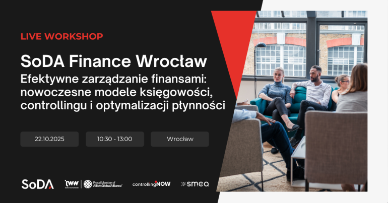 Zapraszamy na wydarzenie SoDA, poświęcone zarządzaniu finansami w firmach IT! To wyjątkowe warsztaty, organizowane we współpracy z ekspertami JWW Accounting Office, controllingNOW oraz SMEO zapewni praktyczną wiedzę oraz przestrzeń do dyskusji i networkingu.
